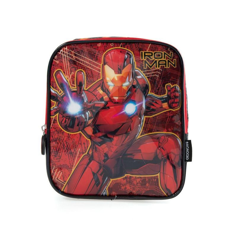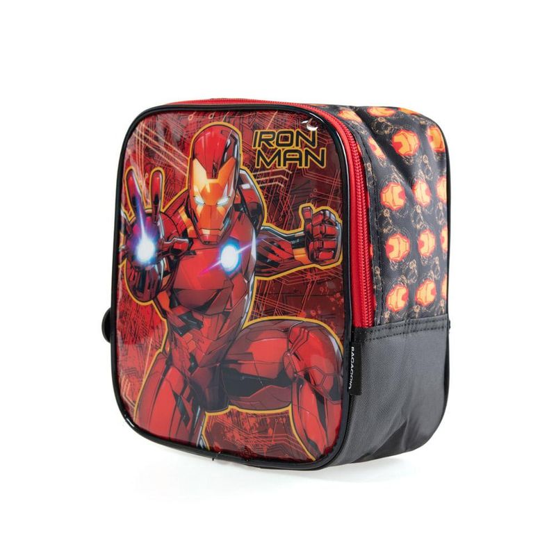 A lancheira do Homem de Ferro chegou para deixar a hora do lanche mais divertida. Ela possui duas alças ajustáveis para carregar nas costas e uma alcinha de mão. Sua parte interna tem revestimento térmico e uma alça para prender a garrafa.
