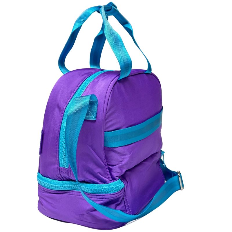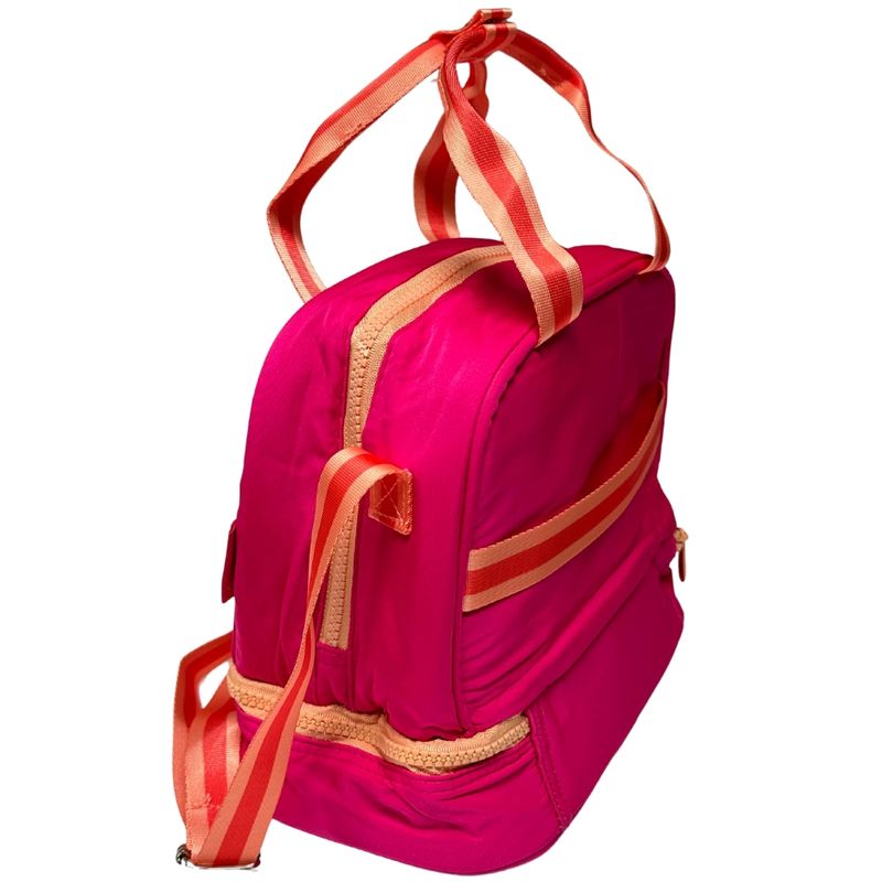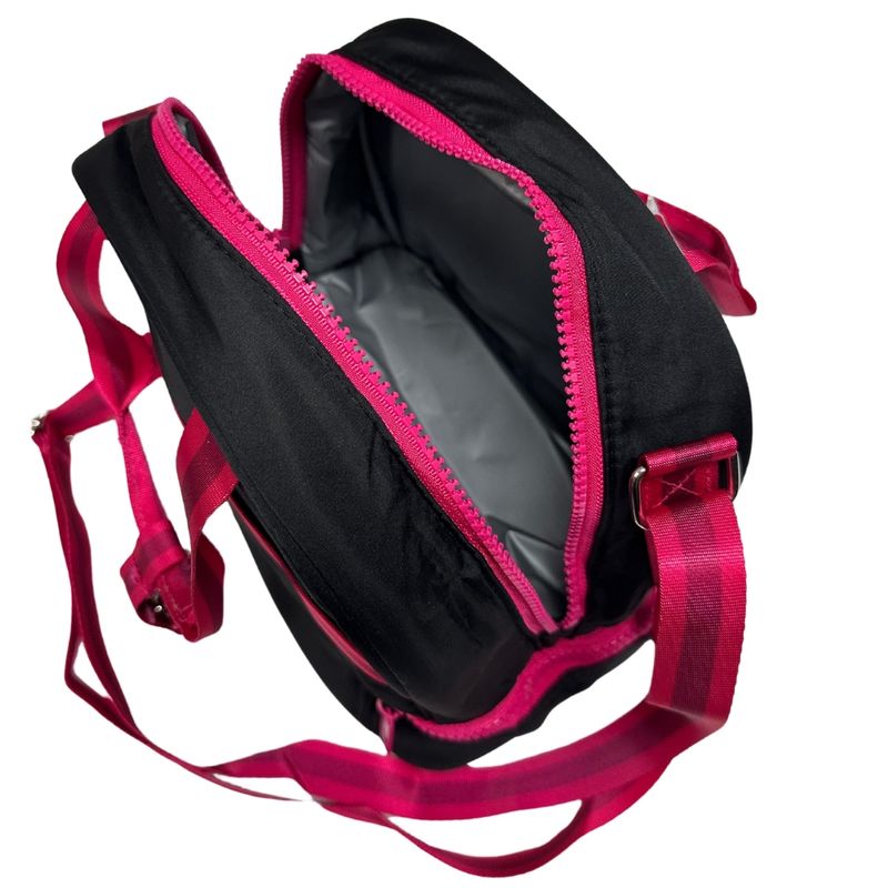 - Possui forro térmico, alça de mão, alças longas reguláveis para usar a tiracolo e amplo espaço para levar seus lanches.
