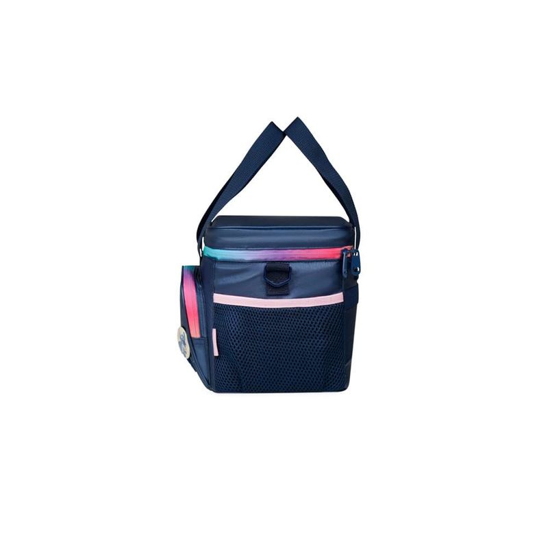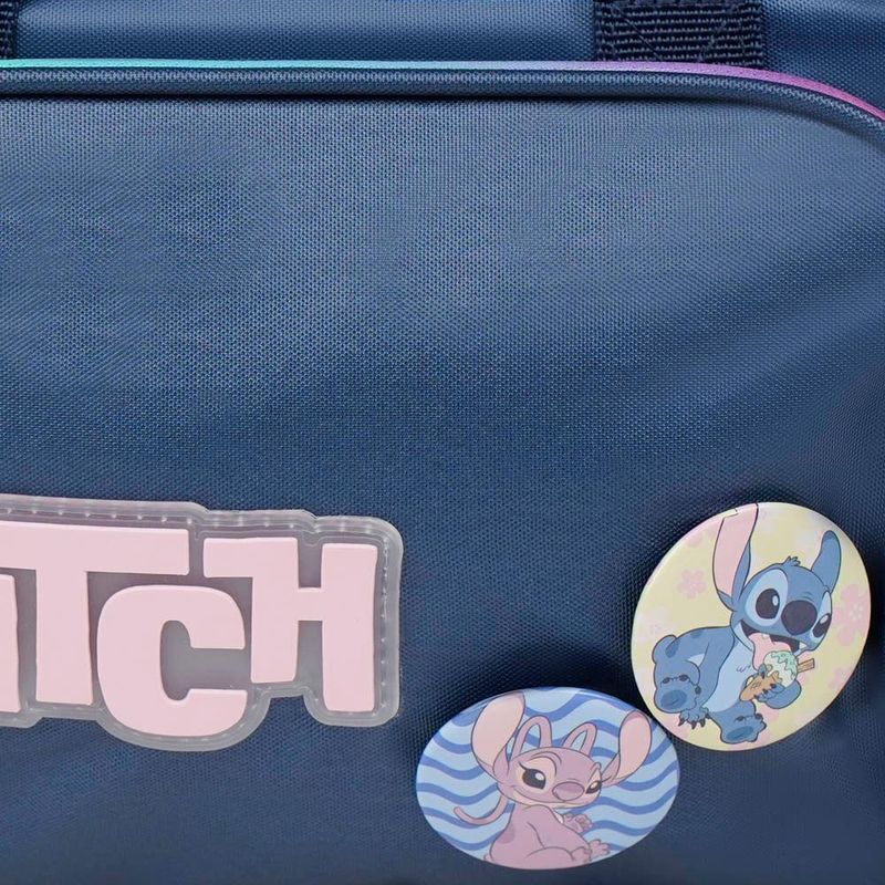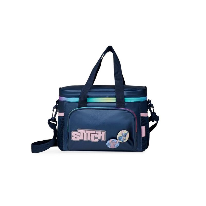 Ideal para a rotina escolar, passeios e atividades do dia a dia, essa lancheira oferece espaço interno amplo, bolso externo para talheres e alça transversal removível que facilita o transporte.Organização e Espaço InternoO interior térmico mantém os alimentos na temperatura ideal por mais tempo, ajudando a conservar lanches, potinhos e bebidas. O bolso frontal para talheres deixa tudo separado e fácil de acessar. Já os bolsos laterais são perfeitos para garrafinhas ou pequenos snacks do dia a dia. A abertura ampla favorece a visualização de tudo, evitando bagunça e perda de itens no fundo da lancheira.onforto no Dia a DiaA lancheira oferece duas formas de uso: pela alça de mão reforçada ou com a alça transversal removível, permitindo que a criança ou responsável escolha o modo mais prático. A presença da alça carona permite acoplar a lancheira à mochila ou mala escolar, facilitando o transporte em dias mais carregados.Durabilidade e Detalhes BagaggioO material perolado azul garante visual moderno e resistente, enquanto o zíper colorido traz uma camada extra de charme. Os bottons do Stitch são removíveis e colecionáveis, agregando personalidade e permitindo customização. A Bagaggio garante materiais de qualidade e acabamento reforçado em cada peça.Design Exclusivo que EncantaO grande destaque deste modelo é a combinação do acabamento perolado com o visual divertido do Stitch, criando uma lancheira sofisticada e temática ao mesmo tempo. Os detalhes multicoloridos e a aplicação do nome do personagem deixam o produto ainda mais especial para quem ama o universo Disney.
