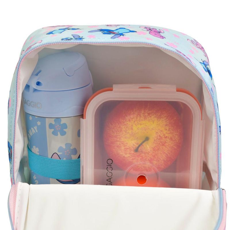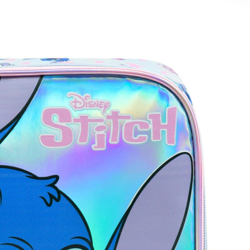 A Lancheira Térmica Stitch é pura diversão e praticidade para o dia a dia das crianças. Com estampa encantadora e painel frontal em PVC personalizado do personagem, ela mantém os alimentos frescos por mais tempo graças ao seu interior térmico. Possui alça de mão, alça de costas e alça carona para fixação na mochila, além de puxadores personalizados que completam o visual lúdico. Ideal para levar lanches e bebidas com conforto e o toque mágico da Disney.