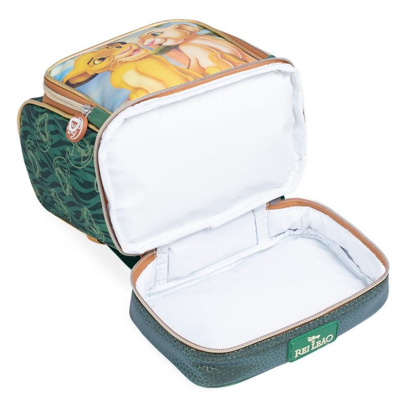 Lancheira Térmica Infantil Masculina Rei Leão Simba e Nala Verde Escuro