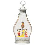 Traga a magia natalina com a lanterna clássica da coleção Moments in Time, apresentando Mickey, Minnie e Pluto decorando alegremente um poste de luz adornado com uma guirlanda de Natal. Esta lanterna iluminada com LEDs emite uma luz branca quente e possui um efeito hipnotizante de glitter giratório na água, que simula a queda de neve, criando um cenário encantador e acolhedor perfeito para a decoração de sua casa durante as festas de fim de ano. O design detalhado e feito à mão destaca as roupas festivas e a posição alegre dos personagens, em uma base de tons prateados ornamentada que dá um toque elegante ao conjunto.