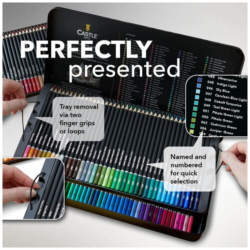 Castle Art Supplies Conjunto de lápis colorido 120 para artistas, apresentando o núcleo soft series para camadas, misturas e sombreamentos especializados perfeito para livros de colorir e sala de aula