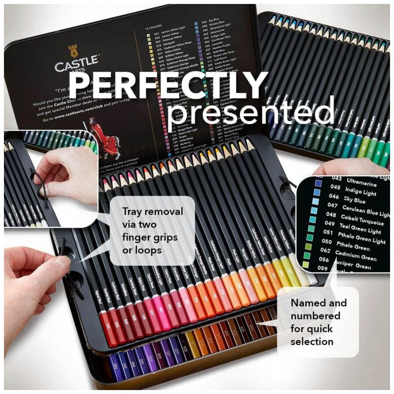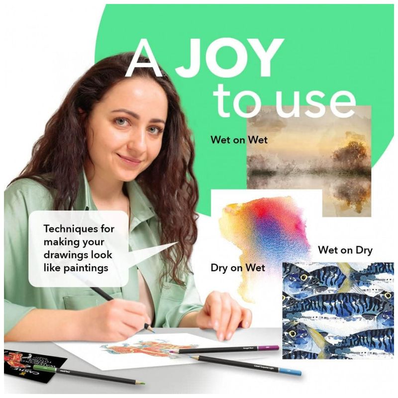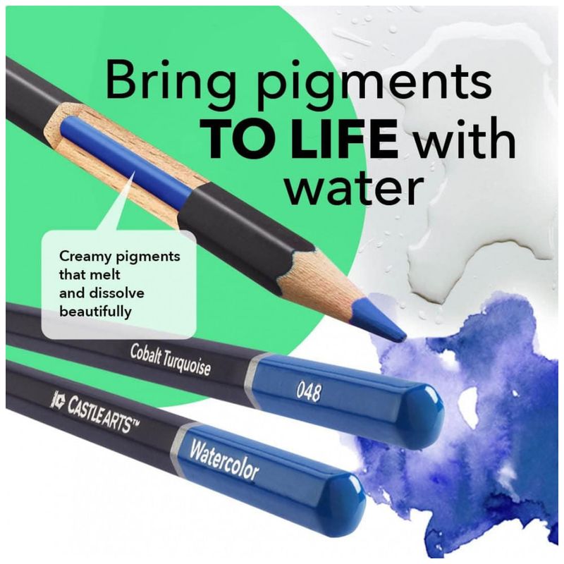 Castle Art Supplies 72 Lápis de aquarela para adultos e profissionais Artista Premium com cores vibrantes e belos efeitos de mesclagem com água