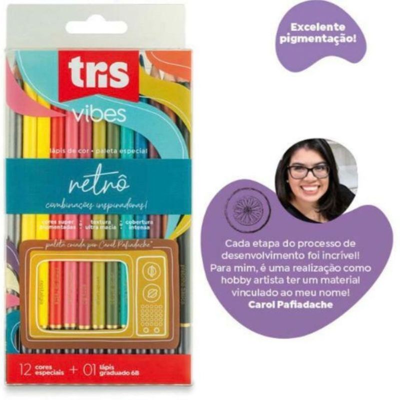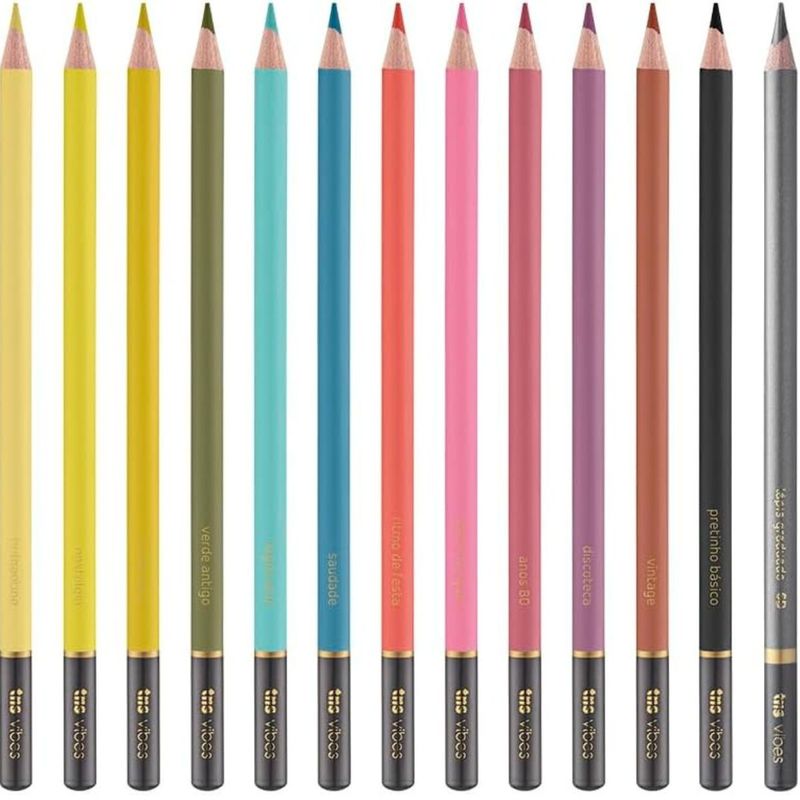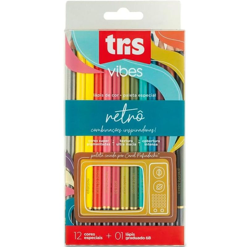 Lápis de Cor Vibes Retrô - 12 Cores + 1 Lápis Graduado 6B - Tris