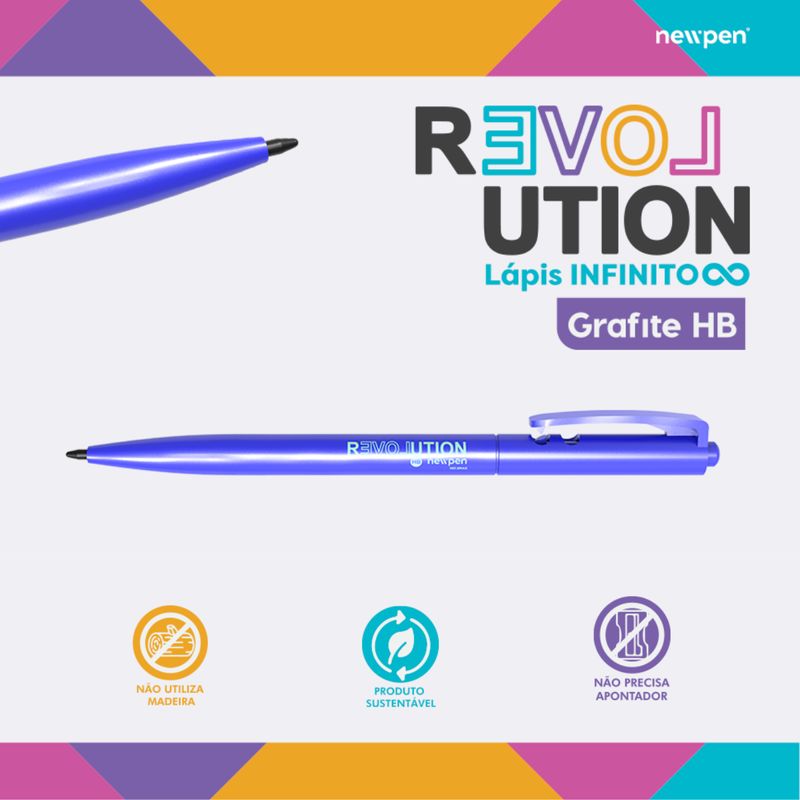LIVROS E PAPELARIAMATERIAIS ESCOLARESESTOJOSLAPIS GRAFITE REVOLUTION RETRATIL METALLIC BLUE HB NEWPEN