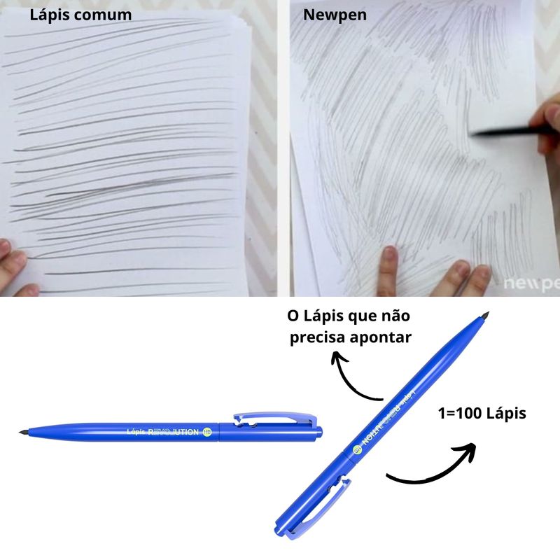 Durabilidade Extrema: Um único lápis Revolution é equivalente a 100 lápis comuns, garantindo uma longa vida útil.