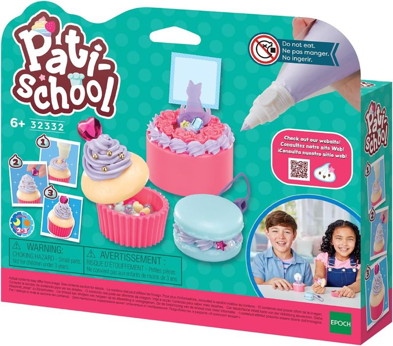 Pati-school é um kit de artesanato decorativo e coletivo inspirado em guloseimas que proporciona diversão com cobertura para todos! A pasta especial Pati-school e as bases exclusivas para artesanato — ambas não comestíveis! — fazem com que seja divertido e fácil para qualquer criança se tornar especialista em artesanato! Basta cobrir, decorar e deixar secar ao ar por 2 a 3 dias até que a pasta endureça, e você terá um item duradouro parecido com um doce que pode ser usado como decoração de ambientes ou dado a amigos como presentes charmosos! O Kit Lavender & Pastel Creations vem completo com uma pasta Pati-school cor de lavanda e 3 bases de artesanato diferentes inspiradas em guloseimas que podem ser usadas como uma caixa de tesouro, um porta-cartões e um chaveiro!