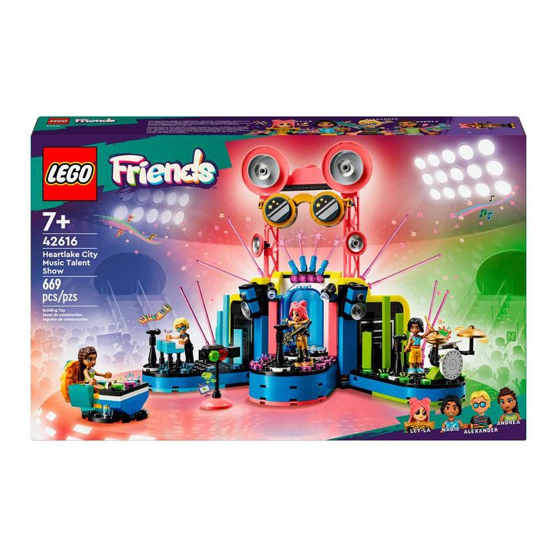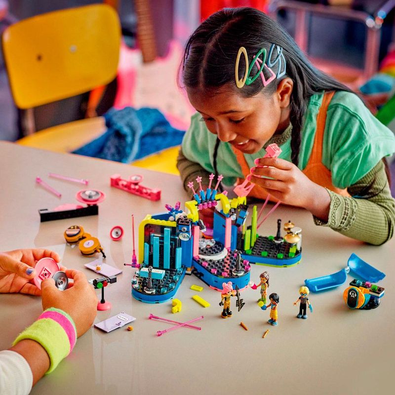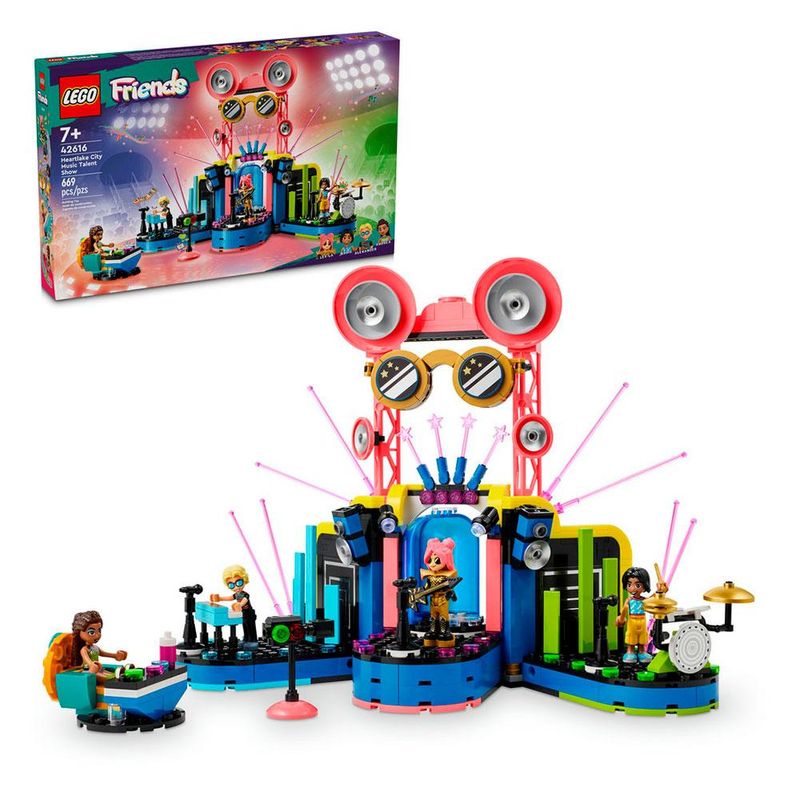 Crianças que adoram programas de talento podem dar um show com este conjunto LEGO® Friends Programa de Talentos Musicais de Heartlake City (42616) para crianças maiores de 7 anos. O conjunto inclui um palco musical de brinquedo com área de bastidores, mesa de jurado, 4 minibonecos e vários acessórios.Este conjunto infantil oferece horas de diversão. As crianças podem dar um show usando os diferentes músicos. Há a cantora Ley-La, um tecladista e baterista com engrenagens especiais que giram para fazer as duas figuras se moverem enquanto tocam em seus próprios palcos. É divertido criar momentos dramáticos enquanto as crianças colocam a Ley-La na plataforma giratória para sua grande entrada. As histórias continuam enquanto os participantes relaxam nos bastidores. Depois, as crianças podem encenar a grande final enquanto a Andrea usa os botões em sua mesa de jurado para escolher o ato vencedor.Este brinquedo de faz de conta é uma ideia de presente musical divertido para crianças e um kit de construção ótimo para ajudar a continuar o desenvolvimento social e emocional.