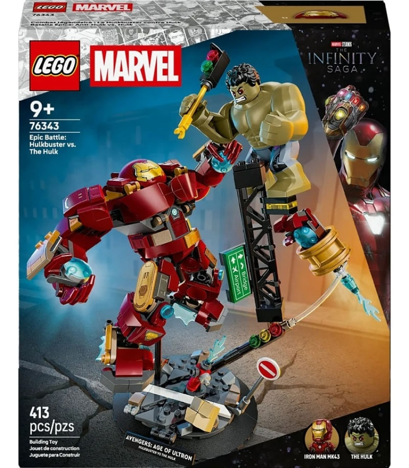Lego 76343 Marvel Vingadores Era De Ultron - Batalha Épica: Hulkbuster Vs. Hulk - 413 peças raga a ação de Vingadores: Era de Ultron da Marvel Studios para a vida real com o LEGO | Marvel Batalha Épica: Hulkbuster contra Hulk (76343). Com minifiguras do Iron Man e Hulk, além da icónica armadura Hulkbuster, este incrível set proporciona às crianças oportunidades ilimitadas de brincadeiras e exposições criativas. O Iron Man luta com o Hulk na sua armadura Hulkbuster, numa cena de rua repleta de detritos, estruturas de aço prestes a colapsar e com uns semáforos que o Hulk usa com. O Hulkbuster é totalmente articulado para maximizar as possibilidades de poses. Com uma base resistente e placa identificadora, as crianças usam o modelo como decoração ou removem as minifiguras para criar as suas próprias aventuras de Super-heróis. Este set é uma excelente ideia de presente e com a app LEGO Builder, as crianças constroem com confiança – ampliando, rodando em 3D e acompanhando o progresso com instruções digitais simples. Contém 413 peças. Idade acima de 9 anos Contem 413 peças Tamanho da embalagem 26 x 22 x 6 cm Fabricante lego