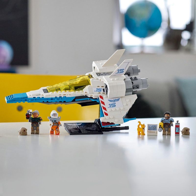 Esta incrível nave espacial para construir contém detalhes autênticos de Lightyear da Disney e Pixar, a história da origem de Buzz Lightyear, tais como um cockpit que abre e onde cabe a minifigura LEGO® Buzz Lightyear, e uma célula de combustível removível. O conjunto traz 4 personagens do filme e 3 armas, incluindo o lançador de foguetes de «Mr. Boom», assim os fãs podem recriar cenas do filme. Também tem um suporte com placa informativa. Os fãs vão poder expor com orgulho o modelo em seu quarto.