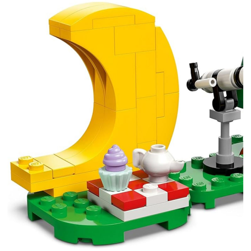 Procurando um agrado para uma criança que adora os novos brinquedos de LEGO Animal Crossing? O kit de construção Admirando estrelas com Celeste (77053) de 78 peças, é um presente divertido em qualquer ocasião para meninas e meninos maiores de seis anos que adoram brinquedos de astronomia e brincadeiras criativas. As crianças constroem uma cena ao ar livre inspirada na série de jogos. Elas podem montar o telescópio e brincar com a minifigura da coruja Celeste enquanto ela consulta seu livro de astronomia. Fãs do jogo reconhecerão a cena enquanto fazem um desejo para uma estrela cadente e coletam os fragmentos de estrela que caíram para decorar a cadeira lua crescente. Com suas bases de construção modulares, este conjunto permite que meninas e meninos mudem o visual deste brinquedo de acampamento para crianças. Jovens construtores também podem desfrutar da diversão de construção digital com o aplicativo LEGO Builder, onde podem ampliar e girar modelos em 3D. Os brinquedos criativos de LEGO Animal Crossing permitem que crianças continuem criando histórias imaginativas com personagens e cenários conhecidos da série de jogos, até mesmo quando estão fazendo uma pausa nas telas.MarcaLEGOReferência77053ModeloAdmirando estrelas com CelesteQuantidade de Peças78 peçasIdade RecomendadaA partir de 6 anosTemaAnimal CrossingDesenvolvimento PedagógicoCapacidade visual, sensibilidade tátil, coordenação manual, coordenação motora, imaginação de fantasia, socialização, interação entre pais e filhos, estimula a criatividade e percepção de movimentoMaterialPlásticoCorColoridoCertificado Homologado pelo Inmetro Número005828/2021Peso do Produto com Embalagem120gDimensões do Produto com EmbalagemLargura 14,1cm Altura 12,2cm Profundidade 4,6cmPrazo de Garantia03 meses de garantia legalConteúdo da Embalagem1 Conjunto LEGO