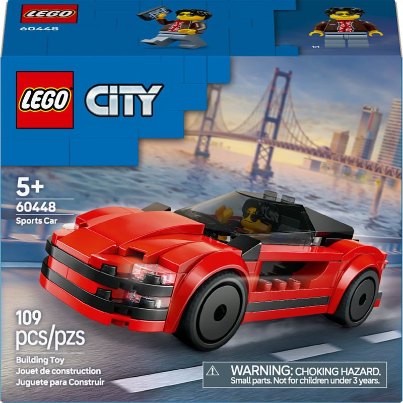 Presenteie seu jovem fã de carros com o conjunto LEGO City Carro Esportivo Vermelho para maiores de 5 anos (60448). Este supercarro elegante conta com aros legais, pneus perfil baixo e um cockpit fumê. As crianças podem colocar a minifigura do motorista no volante e guardar o celular e acessórios de limpeza no porta-malas antes de pegar a estrada para aventuras em alta velocidade!