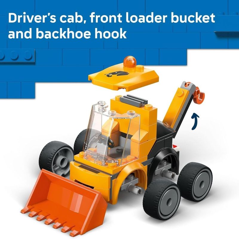 Crie a base para aventuras de construção incríveis com o minikit de construção LEGO City Veículos: Carregadeira de Construção (60483) para crianças maiores de 5 anos. Este caminhão compacto de fácil construção garante uma apresentação divertida ao mundo de LEGO City para jovens construtores. Os detalhes incluem pneus de borracha, cabine do motorista, balde carregador frontal e uma retroescavadeira com um gancho. O conjunto inclui uma minifigura de operário iniciante que encaixa perfeitamente na cabine do motorista para horas de diversão. Parte da coleção LEGO City Veículos, esta carregadeira de construção é perfeita para crianças jovens e serve como um ótimo presente de aniversário ou surpresa para meninos e meninas que adoram veículos de construção e brincadeiras imaginativas. Combine com outros conjuntos LEGO City (vendidos separadamente) para ainda mais diversão. Com este conjunto LEGO City Veículos, as crianças desfrutam de uma construção intuitiva com o aplicativos LEGO Builder, ampliando e girando com instruções em 3D, enquanto salvam e acompanham seu progresso. O conjunto contém 61 peças.