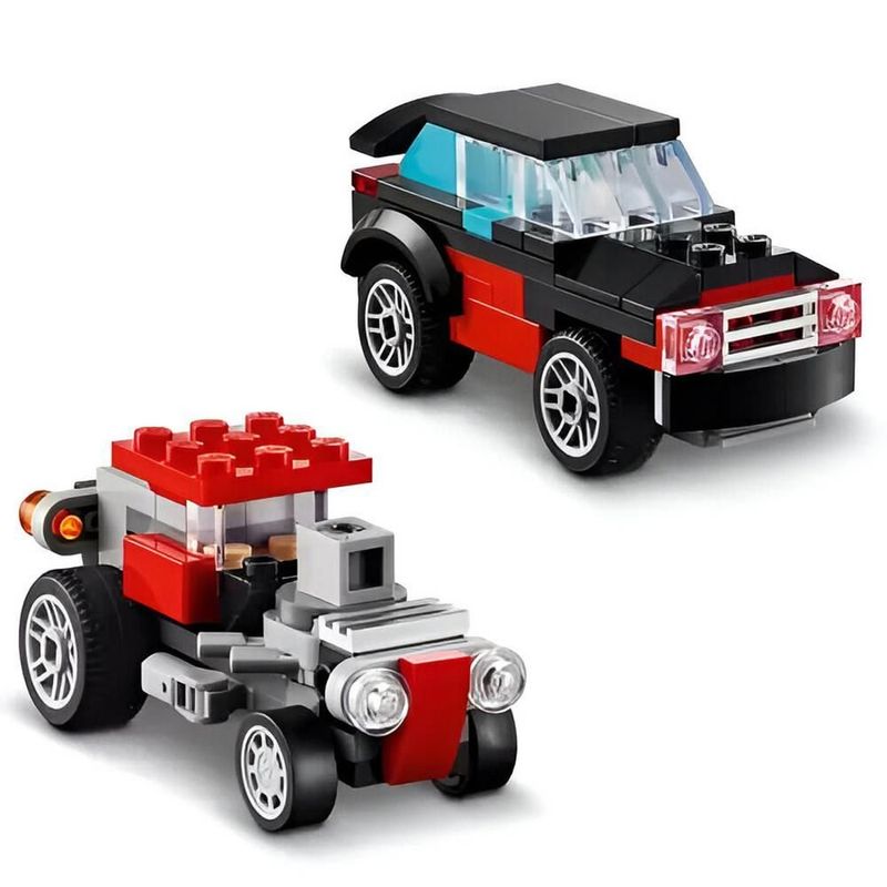 Com o LEGO Creator 3em1, as crianças podem construir 3 sets diferentes, cada um com 2 veículos. Vão poder construir o Camnhião de Plataforma com Helicóptero, reconstruí-lo num avião a hélice e caminhão de combustível com rodas funcionais.