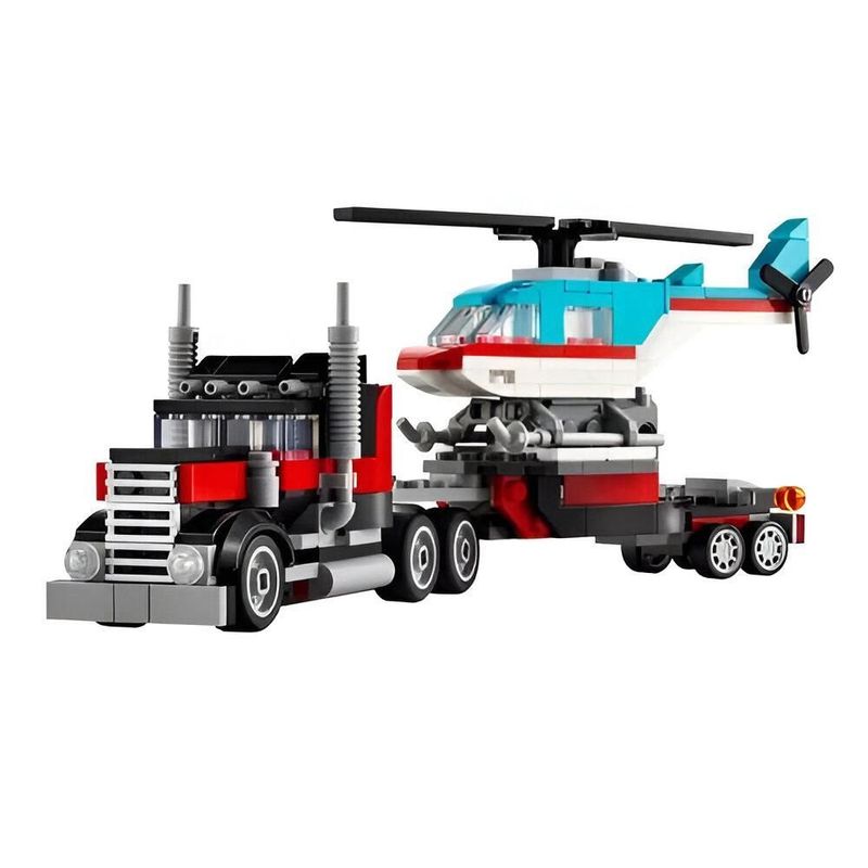 LEGO 31146 Camião de Plataforma com Helicóptero contém 270 peças. O conjunto vem com 1 folheto de instruções, é adequado para crianças dos 7 anos de idade.