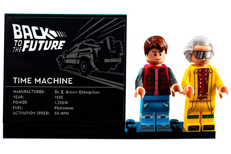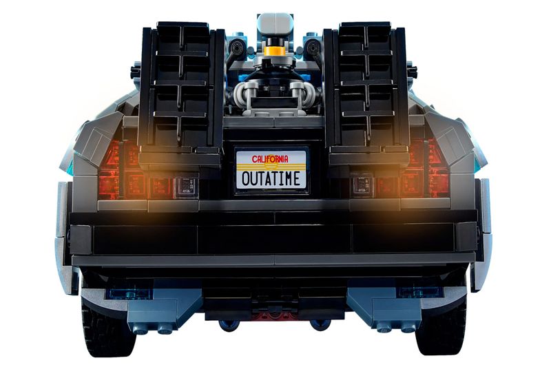 Doc e Marty viajaram a 140 quilômetros por hora, mas você pode levar o tempo que quiser, construindo todos os detalhes impressionantes deste conjunto. As características autênticas incluem portas de gaivota que abrem, pneus que dobram para o modo de voo, condensador de fluxo luminoso, datas impressas no painel, capô que abre, e também uma prancha voadora e placas que podem ser trocadas. Com as minifiguras de Doc e Marty, este modelo cria a peça de exposição perfeita para prestar tributo a seu filme favorito.