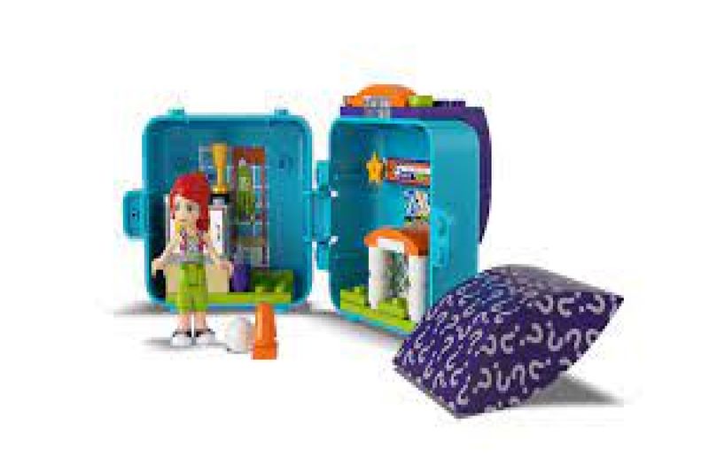 Criado para se parecer com uma bolsa esportiva, este cubo contém uma figura de miniboneca da Mia e um cão, para crianças, em uma de quatro cores. De um lado do cubo está um gol e do outro está o vestiário. Todas as peças se fixam na base – tornando-o um ótimo brinquedo para esportes divertidos em qualquer lugar – e tudo pode ser guardado de forma organizada na caixa. É o brinquedo perfeito para levar para a casa de um amigo ou para a escola para diversão no recreio.