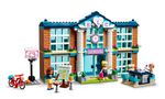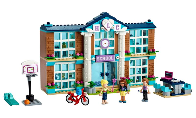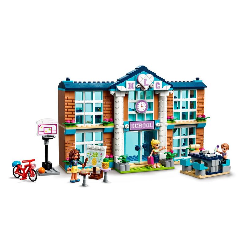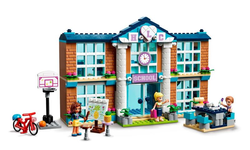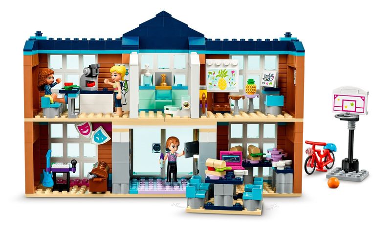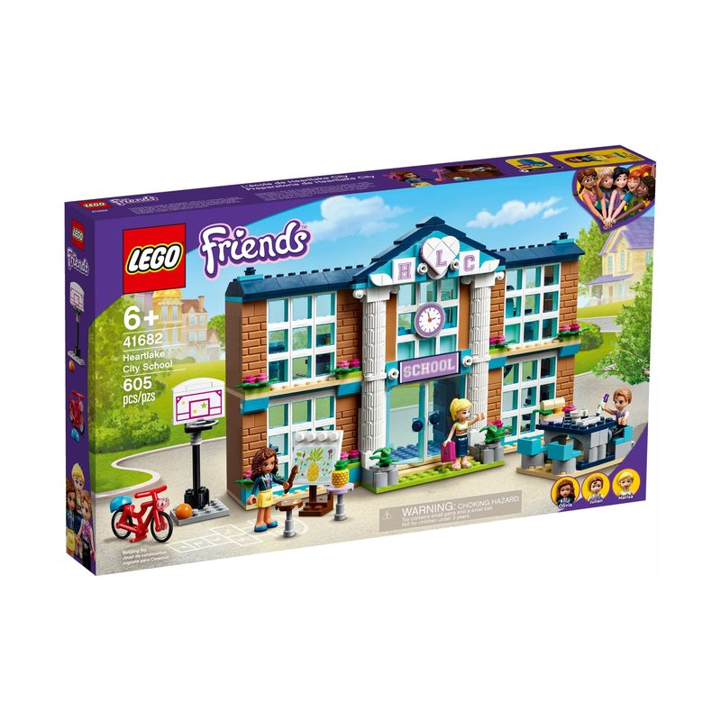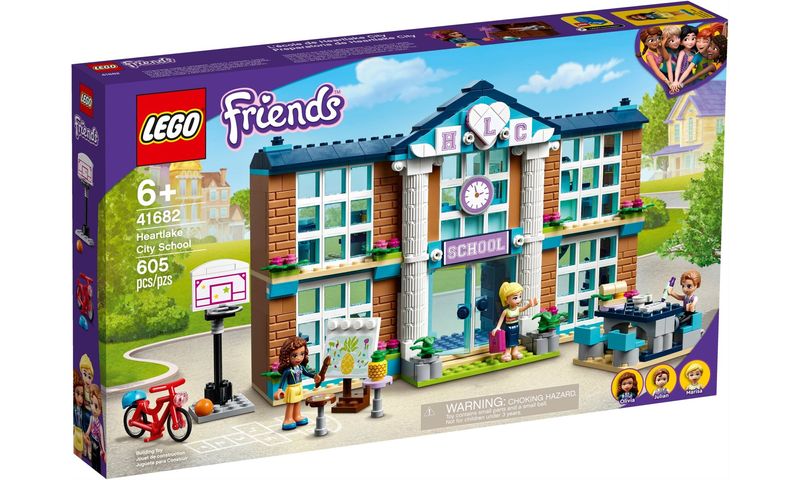 Deixe as crianças recriar seu dia perfeito na Escola de Heartlake City (41682). Dentro do edifício lindamente decorado, as crianças podem recriar o dia escolar, encontra-se com os amigos, assistir às suas aulas favoritas e brincar de professor. Os 2 andares deste modelo incluem um laboratório de ciências com um microscópio e uma joaninha para estudar, bem como salas de aula de arte, drama e música, esta última contendo um baú de kit de vestir criativo e uma seleção de instrumentos. As crianças podem se divertir com os amigos em uma cantina com mesas e acessórios de comida. Há até um corredor com armários e uma exibição de troféus.