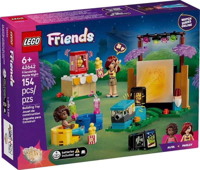 Desperte a imaginação da sua criança com o incrível kit LEGO Friends Noite de Cinema da Amizade (42642)! Neste conjunto repleto de diversão, meninas e meninos acima de 6 anos poderão criar suas próprias histórias cinematográficas com as amigas Paisley e Aliya. Os pequenos poderão experimentar a magia do cinema no conforto do jardim, com um miniprojetor que traz as imagens à vida na tela grande ao toque de um botão. Além disso, o conjunto é recheado de acessórios criativos que garantem horas de brincadeira. Confira os incríveis benefícios deste brinquedo: - Inclui duas minibonecas LEGO Friends para diversão em grupo. - A tela grande se ilumina com o projetor, proporcionando uma experiência interativa. - Vários acessórios, como máquina de pipoca, bebidas e pufes, enriquecem a brincadeira. - Estimula a criatividade e a amizade, permitindo que as crianças contem suas próprias histórias. - Faz parte da série LEGO Friends, que incentiva a exploração de diferentes momentos de amizade. Este conjunto de 154 peças é um presente ideal para jovens cineastas e amantes de histórias. Não perca a chance de proporcionar um mundo de aventuras e sorrisos! Adquira já o seu LEGO Friends Noite de Cinema e deixe a criatividade fluir!