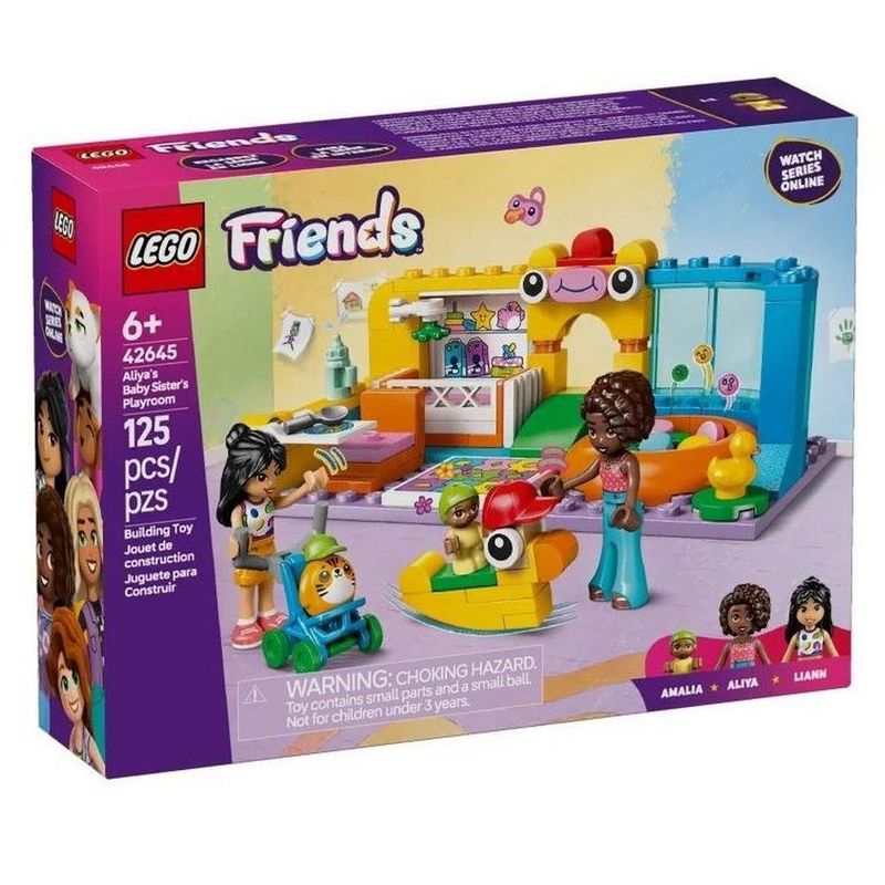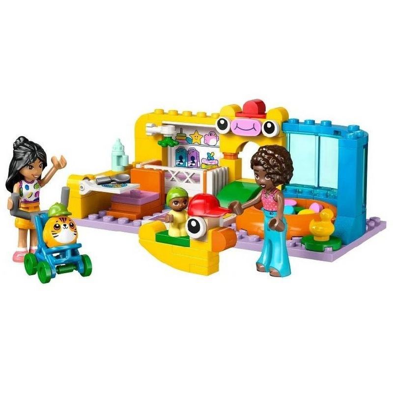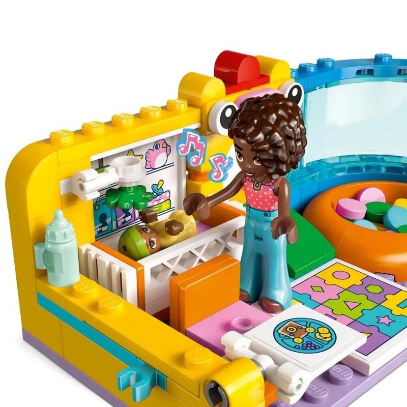 Inspire as crianças a construir o quarto dos brinquedos, onde a Aliya e a Liann tomam conta da Amalia, a irmã bebé da Aliya. Tem tudo o que as crianças precisam para criar histórias de amizade. Podem dar de comer ao bebé na mesa – a função de virar mostra a confusão que pode ser a refeição de um bebé! E para dormir, a Amalia tem um berço. Mas as brincadeiras também estão servidas com um escorrega, tapete, recreio de bolas, pato de embalar e uma peça LEGO estilo peluche. Depois, as amigas vão passear a Amalia no seu carrinho.