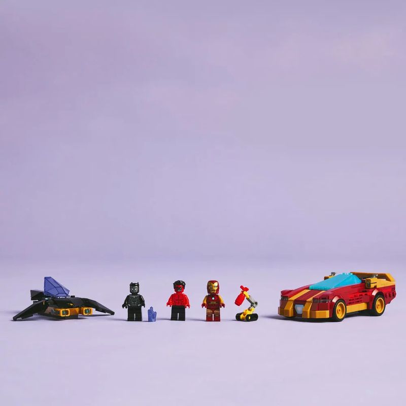 O Carro do Homem de Ferro e Pantera Negra vs. Hulk Vermelho (76310) é um conjunto montável de alta qualidade para meninos e meninas maiores de 7 anos com uma paixão por veículos, Super-heróis e batalhas entre o bem e o mal. Este conjunto LEGO® legal é um ótimo presente para construir e brincar para todos os jovens Super-heróis, incluindo fãs da Marvel e crianças que adoram aventuras práticas. O conjunto para construir do Homem de Ferro inclui as minifiguras do Homem de Ferro, Pantera Negra e o Hulk Vermelho, além de uma figura LEGO do robô ajudante do Homem de Ferro, Dum-E, com seu extintor de incêndio. O carro esportivo estiloso do Homem de Ferro conta com dois disparadores de pinos, um cockpit que abre e espaço para o Dum-E com seu extintor de incêndio. A aeronave do Pantera Negra conta com dois disparadores de pinos, asas ajustáveis, um cockpit que abre e um painel de controle. Os acessórios incluem um cristal de vibranium precioso, que inspira brincadeiras imaginativas ao ser roubado pelo Hulk Vermelho. Para ainda mais diversão digital, os construtores podem ampliar, girar modelos em 3D e acompanhar seu progresso usando o divertido e intuitivo aplicativo LEGO Builder.