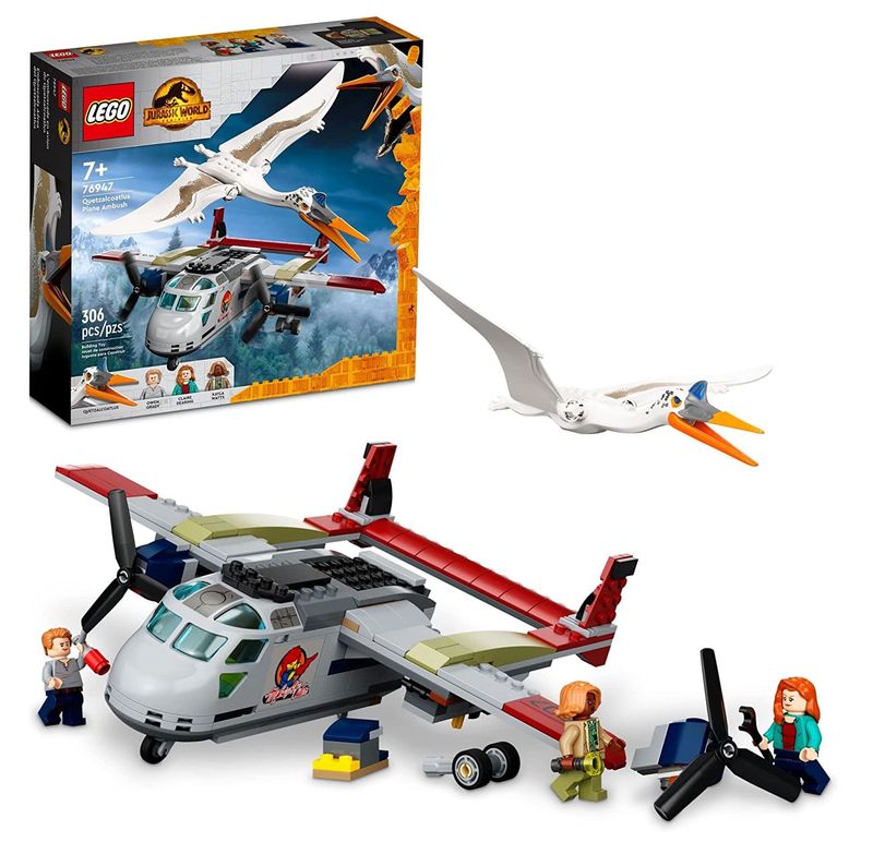 Reviva ação de voo emocionante do filme de Jurassic World Dominion com este conjunto de brinquedo Emboscada de Avião ao Quetzalcoatlus (76947) para crianças a partir de 7 anos que amam dinossauros. Contém um avião com espaço para 3 minifiguras em seu cockpit, hélices giratórias, porão de carga que abre e motores concebidos para se soltarem sob ataque da figura brinquedo Quetzalcoatlus ajustável (os motores podem ser recolocados facilmente).