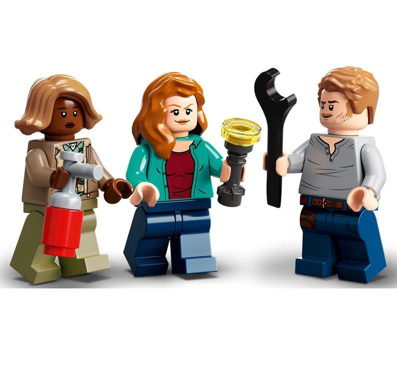 O conjunto traz instruções de construção passo a passo e inclui minifiguras de Owen Grady, Claire Dearing e Kayla Watts, e também um extintor de incêndio para construir e os acessórios lanterna e chave inglesa para inspirar muitas histórias imaginativas!