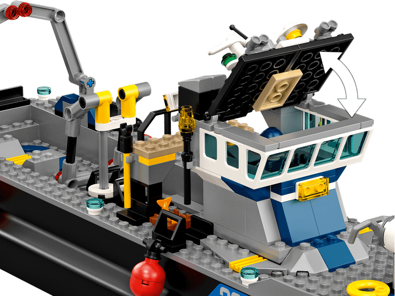 As crianças podem levar a ação de LEGO Jurassic World para a água com este conjunto de brinquedo Fuga de Barco do Dinossauro Baryonyx. O primeiro conjunto LEGO Jurassic World a incluir barcos, contém um barco construído com peças que flutua, mesmo quando transporta a figura de dinossauro ajustável de Baryonyx. O barco tem uma jaula de dinossauro, holofote giratório e uma sala de comando que se destaca para fácil acesso ao porão de carga.