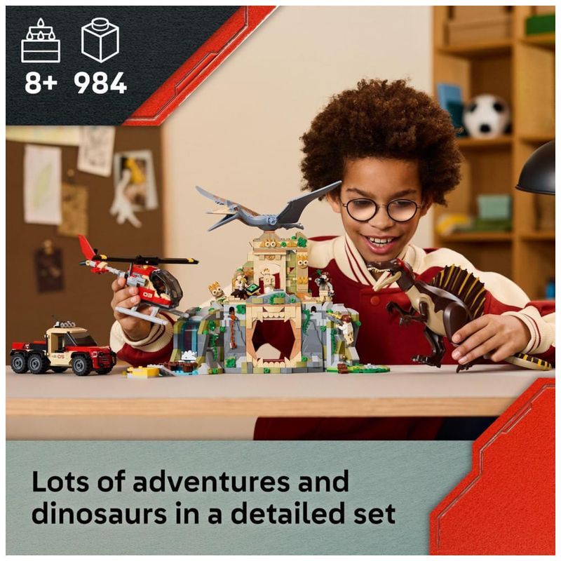 O set traz 4 minifiguras de personagens – Martin Krebs, Zora Bennett, Duncan Kincaid e Dr. Henry Loomis – equipados para missões com dinossauros e cenário de selva. Com 984 peças, o modelo é compatível com outros conjuntos LEGO Jurassic World e pode ser integrado ao aplicativo LEGO Builder para montagem guiada em 3D, zoom e acompanhamento de progresso.?