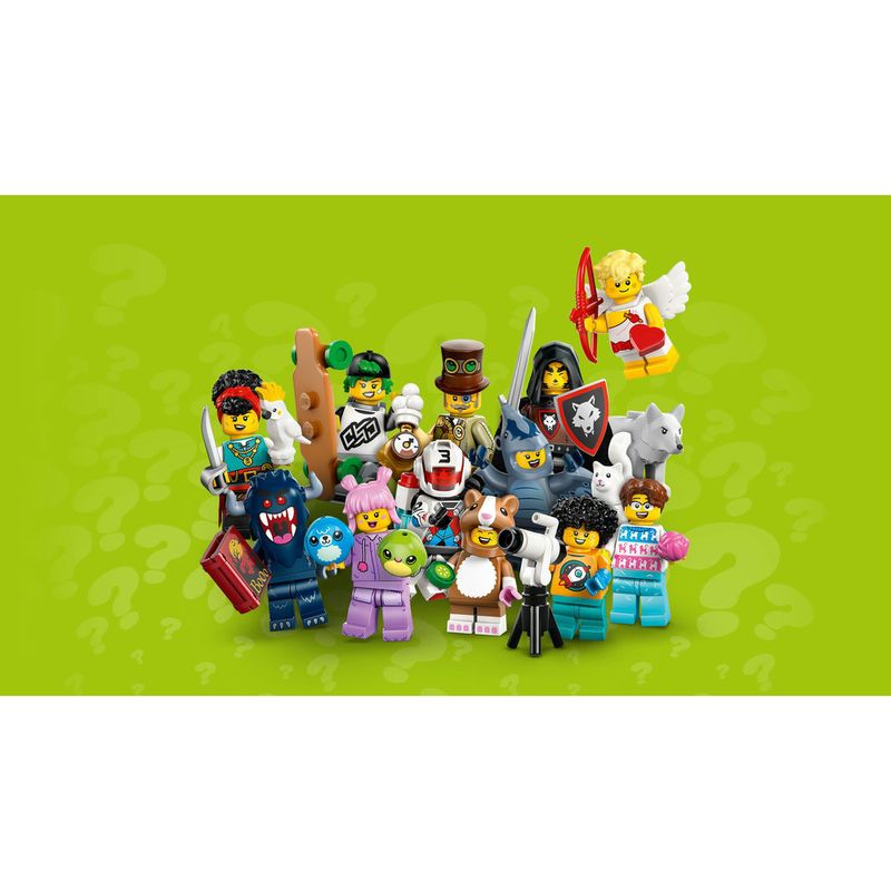 Há 1 minifigura LEGO surpresa em cada caixa e um total de 12 personagens para colecionar: Mestre das Feras da Alcateia, Quartel-mestre Pirata, Inventor Steampunk, Fã com Fantasia de Pterodáctilo, Bicho-papão, Piloto com Jetpack, Fã de Gatos, Skatista com Longboard, Criança Astrônoma, Cupido, Fã com Fantasia de Hamster e Colecionadora de Brinquedos de Pelúcia.