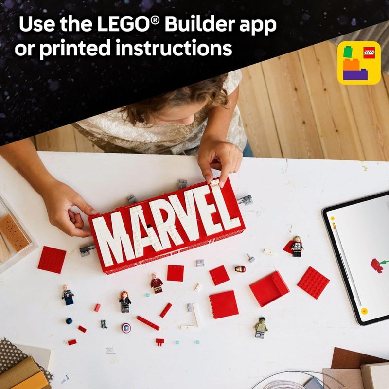 – Este conjunto colecionável com o logotipo da MARVEL é uma ideia de presente para fãs de super-heróis e filmes da Marvel Studios Instruções de construção 3D – As crianças podem baixar o aplicativo LEGO® Builder para uma experiência de construção envolvente, com ferramentas digitais para ampliar e girar modelos em 3D, salvar conjuntos e monitorar o progresso Brinquedos para construir para crianças super-heróis – A ampla gama de conjuntos de construção LEGO® Marvel oferece às crianças um universo em constante mudança de aventuras de super-heróis para construir e brincar Conjunto de logotipo MARVEL de 931 peças – Na posição fechada, o modelo Marvel mede mais de 4 pol. (11 cm) de altura, 11 pol. (28 cm) de largura e 2,5 pol. (7 cm) de profundidade