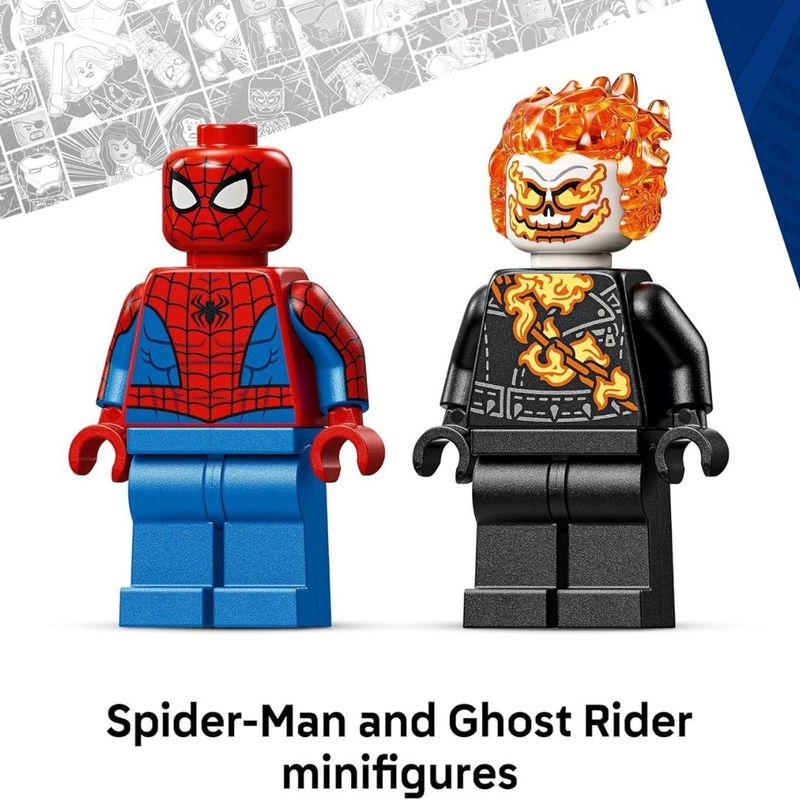 Inicie a ação de perseguição em alta velocidade entre Super-heróis com este brinquedo de construção Homem-Aranha vs. Motoqueiro Fantasma com Motocicleta (76335) para meninos e meninas maiores de 6 anos. A motocicleta pronta para a batalha do conjunto de construção LEGO Marvel e duas minifiguras dinâmicas do Homem-Aranha e do Motoqueiro Fantasma alimentam a brincadeira imaginativa das crianças. A minifigura do Motoqueiro Fantasma é retratada como um esqueleto com chamas vindo de suas mãos e cabeça. Sua icônica motocicleta contém dois escapamentos flamejantes e dois disparadores de pinos embutidos. A corda de teia da minifigura do Homem-Aranha se conecta à motocicleta, oferecendo infinitas possibilidades de brincadeiras enquanto os personagens combatem dentro e fora do veículo em alta velocidade. Este conjunto de construção é uma ótima ideia de presente para os aniversários de jovens Super-heróis, construtores de LEGO e fãs de produtos colecionáveis do Homem-Aranha. E, com o aplicativo LEGO Builder, as crianças podem construir com confiança, ampliando e girando em 3D e acompanhando o progresso com instruções digitais fáceis de seguir. O conjunto de construção contém 72 peças.