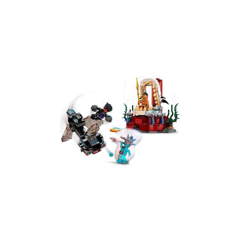 A recriação elegante do submarino Skirmisher de Pantera Negra: Wakanda Forever da Marvel Studios apresenta atiradores que as crianças podem disparar enquanto lutam contra o vilão Attuma. No final da jornada do submarino, eles descobrirão o Templo do Rei Namor e a sala do trono decorada com algas marinhas do Rei. Quando esta missão termina, as crianças retornam ao submarino e partem para a próxima de muitas outras aventuras subaquáticas. O conjunto inclui 3 minifiguras - Shuri, Attuma e Rei Namor - junto com suas armas e acessórios legais.