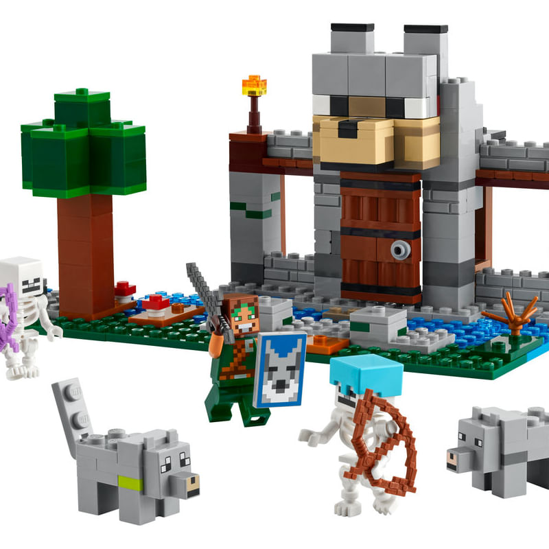 Construa uma base para o Domador de Lobo no bioma de Taiga. Adicione uma cabeça de lobo acima da entrada, cujo rosto muda de amigável para bravo. Dentro, há uma bancada, fornalha potente, bancada de ferraria e uma bigorna para criar armas e fazer reparos. Pegue um osso no baú de suprimentos para domar um lobo. Depois, use seu lobo para batalhar esqueletos. Aqueles ossos extras podem ser úteis!