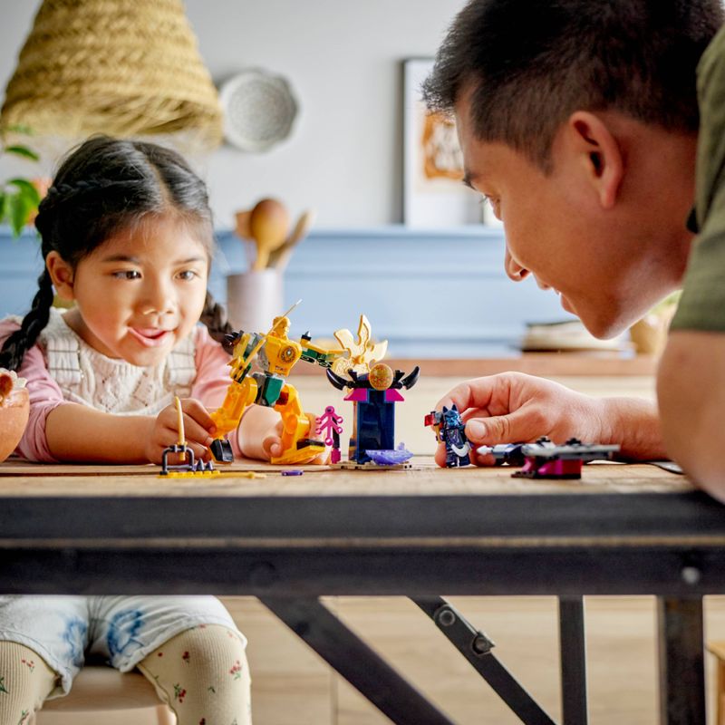 O brinquedo ninja Battle Mech (71804) de Arin permite que crianças a partir de 4 anos aprendam a construir enquanto se juntam à tentativa de seus heróis ninja de salvar seus amigos dragões. Este brinquedo de ação inclui uma figura mecânica impressionante para inspirar as crianças a recriar aventuras emocionantes da 2ª temporada do programa de TV NINJAGO® Dragons Rising.