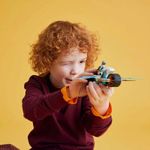 Este brinquedo ninja para crianças inclui uma motocicleta NINJAGO com rodas móveis, lâminas douradas e suspensão no pneu traseiro.