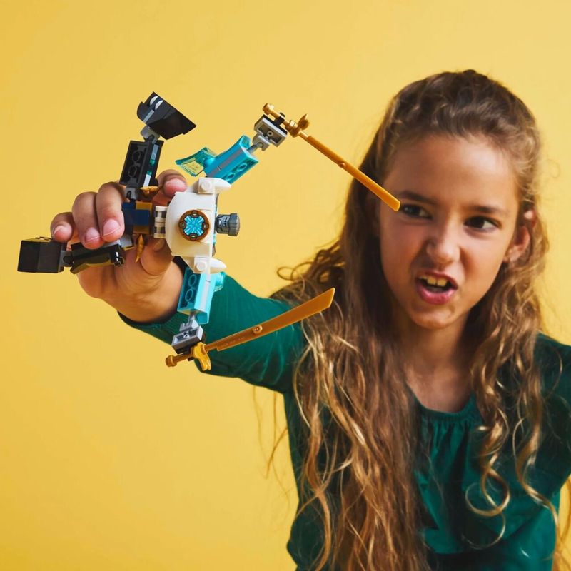 - O conjunto de brinquedo de faz de conta LEGO NINJAGO Zane's Battle Suit Mech (71827) permite que meninos e meninas de 6 anos ou mais encenem ações emocionantes da temporada 3 do programa de TV NINJAGO Dragons Rising.