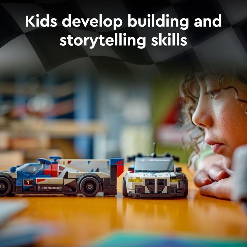 Agora você pode colecionar uma dupla de carros de corrida LEGO Speed Champions BMW M Motorsport. Os modelos do M4 GT3 e M Hybrid V8 podem ser seus para construir, exibir e colocar para correr entre si. Cada carro de corrida está repleto de detalhes autênticos destacando o estilo e alta performance da montadora alemã. Cada carro também inclui uma minifigura de piloto para colocar atrás do volante.
