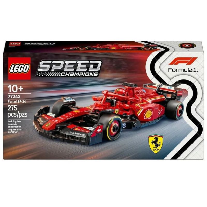 LEGO 77242 Carro de Corrida Ferrari SF-24 F1 foi lançada no ano 2025. O conjunto contém 275 peças. O conjunto vem com 1 minifigure e 1 folheto de instruções. O conjunto é adequado para crianças dos 10 anos de idade.