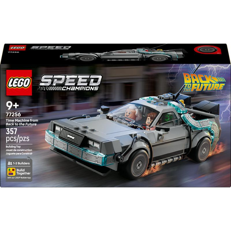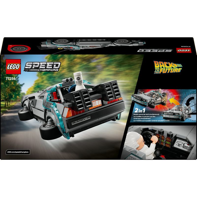 O kit de modelo de carro LEGO Speed Champions Máquina do Tempo de De Volta para o Futuro (77256) permite às crianças maiores de 9 anos construir, exibir e recriar a ação da icônica franquia de filmes. Este carro de brinquedo construído com peças inclui muitos dos detalhes famosos do modelo visto nos filmes populares.