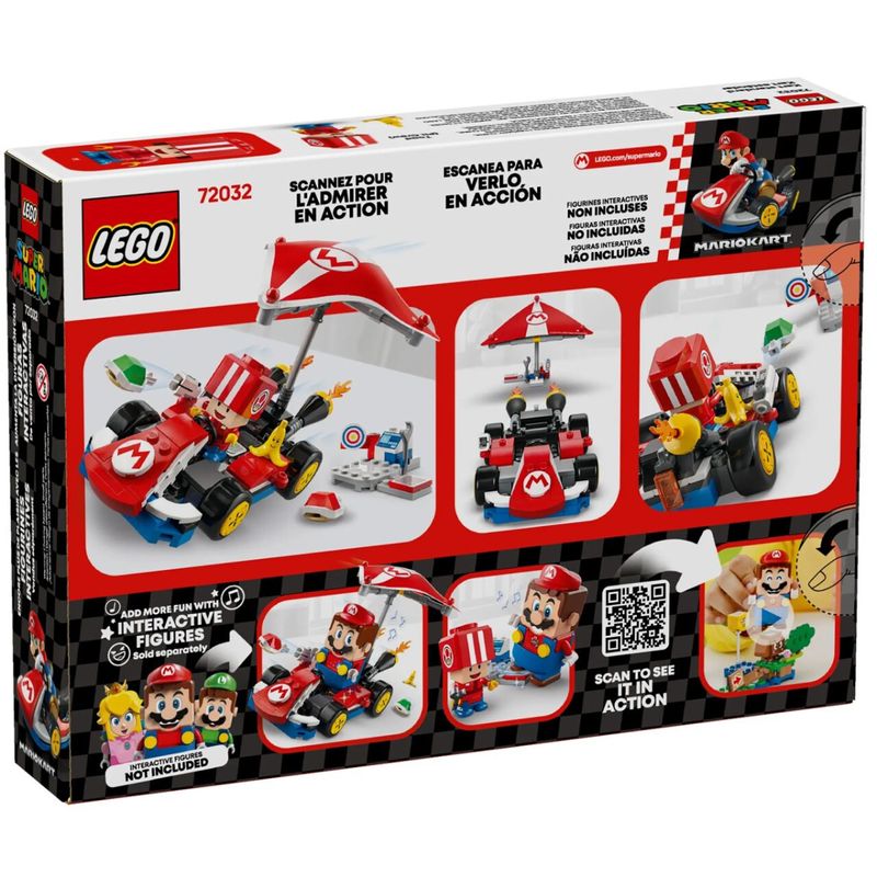 O conjunto inclui um modelo montável do Standard Kart de Mario Kart, uma estação de trabalho com um alvo e uma figura de brinquedo Toad (Pit Crew) em uniforme vermelho de equipe de pit. O Standard Kart apresenta um Super Glider destacável, rodas que permitem drifting e uma função de lançamento para disparar projéteis no alvo da estação de trabalho.