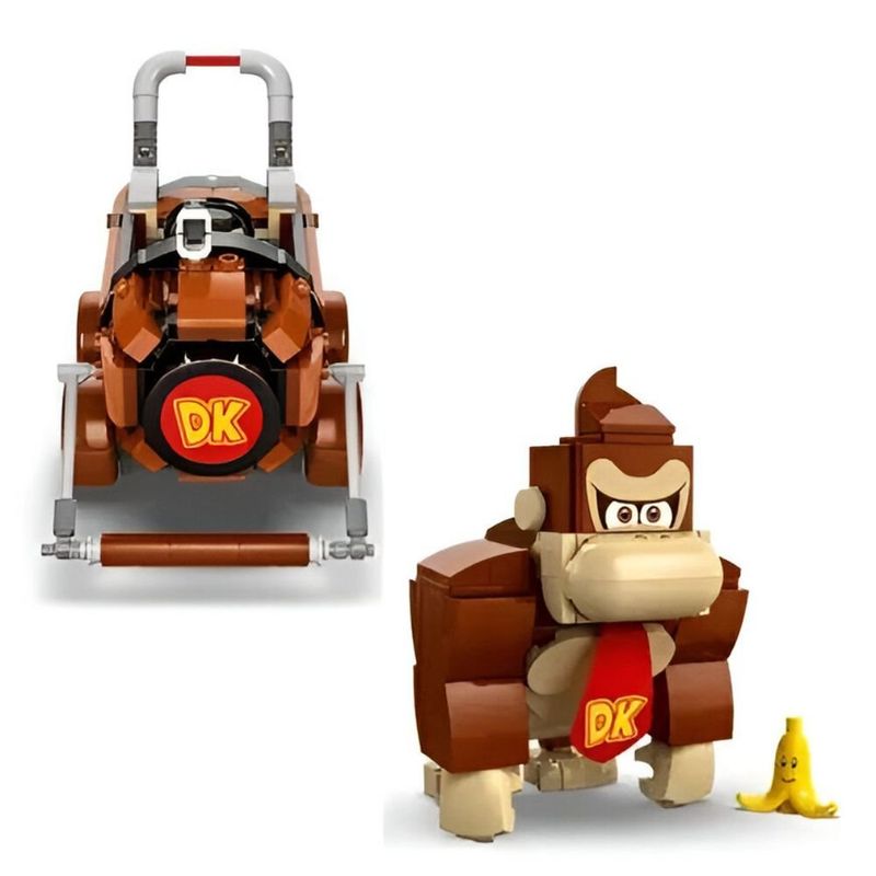 Junte-se ao Donkey Kong em aventuras de corridas Mario Kart com este set Nintendo colecionável para crianças (72033). O set inclui o veículo DK Jumbo construído com peças, figura do Donkey Kong e um alvo, além de um elemento de Banana decorada. Ajude o Donkey Kong a conduzir o DK Jumbo e a acertar no alvo lançando carapaças e derrubando a Banana do topo.