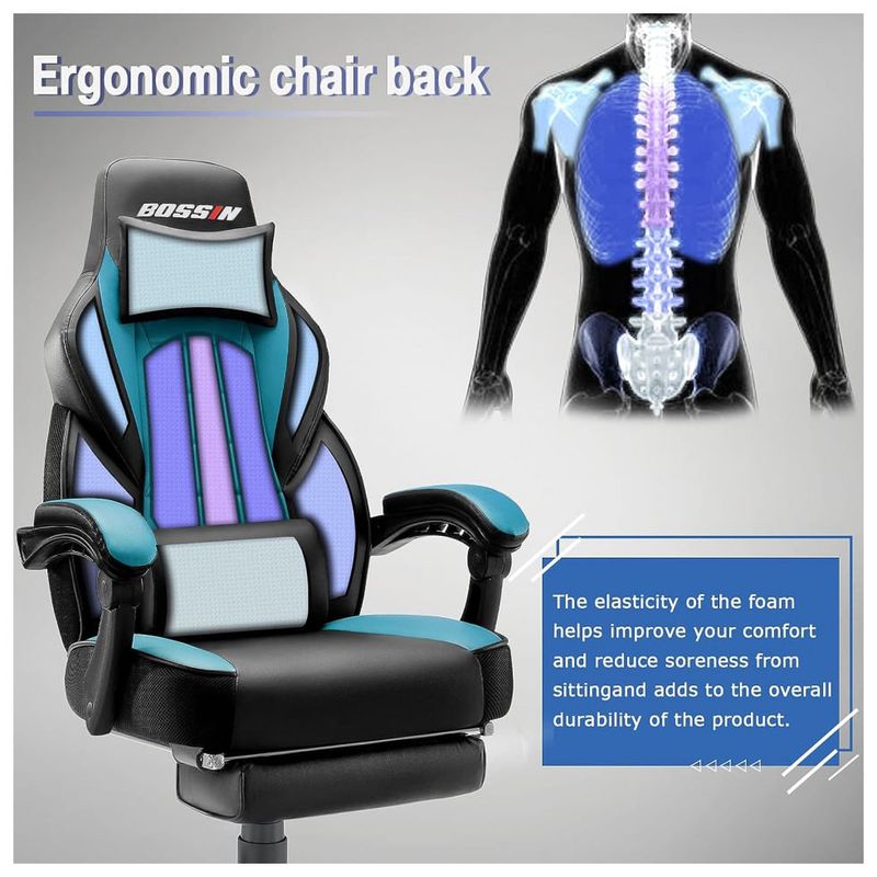 Cadeira de computador de segurança e conforto Elevador a gás classe 3, durável, confiável e suporta até 181 kg. Alta capacidade de carga de base de 5 estrelas. Rodízios de borracha, rolando silenciosamente e testados por 1000 milhas rolando. Esta é uma cadeira gamer para adolescentes adultos e crianças.