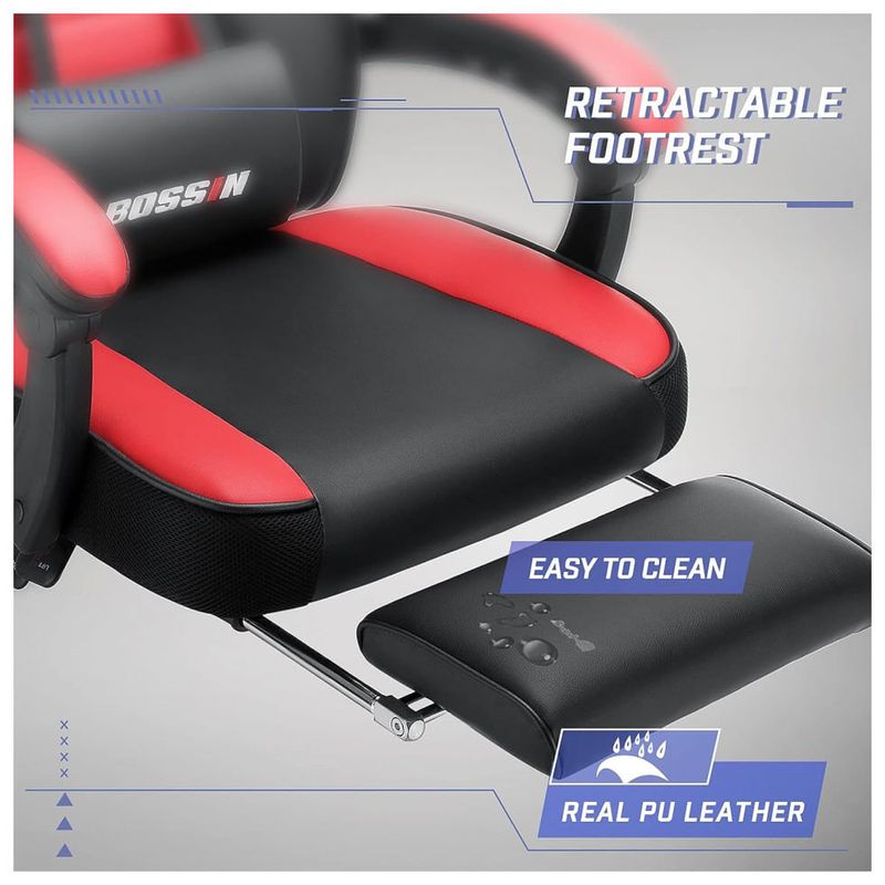 Cadeira de videogame ergonômica confortável Usando couro PU de alta qualidade, macio, confortável e amigável para a pele. Espuma de modelagem de alta densidade, estrutura de aço grossa, mais estável. O apoio de braço desta cadeira de videogame é diferente das outras porque é mais ergonômico, mais macio e mais relaxante.
