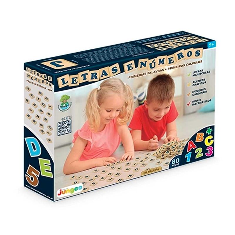 As crianças irão se divertir e aprender com o jogo letras e números em madeira, contém letras maiúsculas, acentos gráficos, números cardinais e sinais matemáticos.