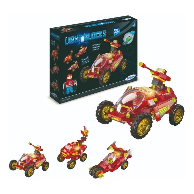 Light Blocks Super Carro 3x1 178 Peças - Xalingo Informações do Produto: Um brinquedo perfeito para entreter as crianças durante longos períodos, com uma versátil utilização, contando com 178 peças que podem ser montadas de 03 maneiras diferentes. Itens Inclusos: 178 Peças sendo 2 com luz. Dimensões aproximadas: 24,5 x 7 x 32 cm Recomendado: Para crianças maiores de 3 anos de idade. Alimentação: Não possui alimentação. Material composição: Plástico. Certificação Segurança: Selo Inmetro. Garantia do Fabricante: 03 meses contra defeitos de fabricação. Aviso: Imagens meramente ilustrativas. As cores podem variar entre as imagens mostradas acima e o produto..