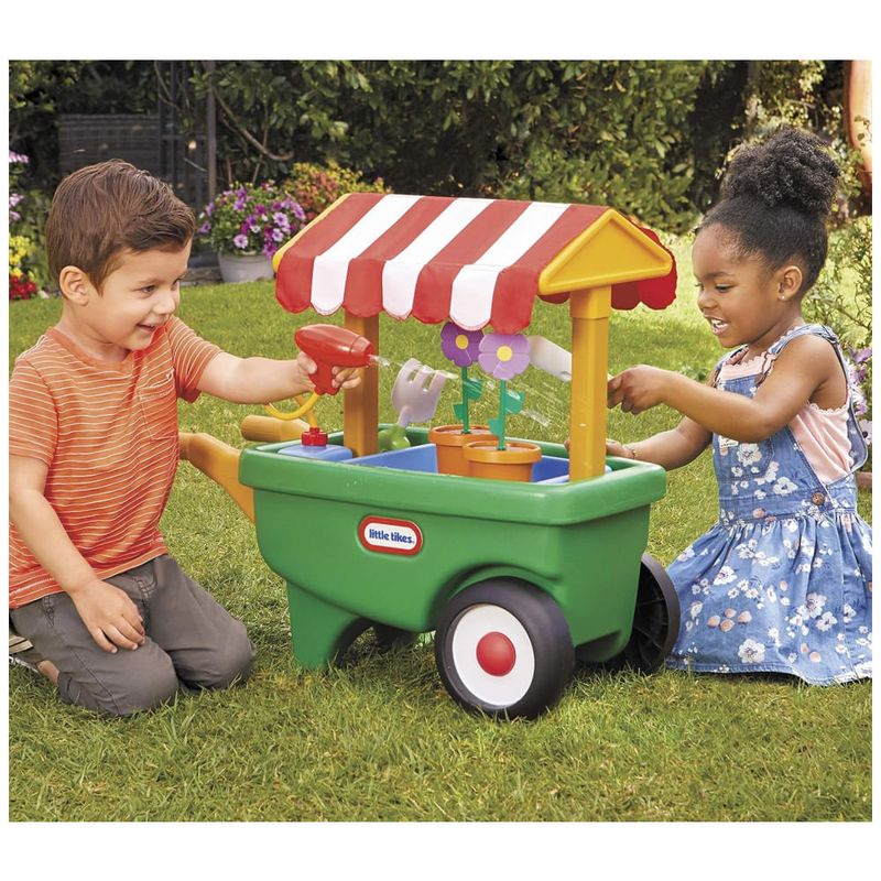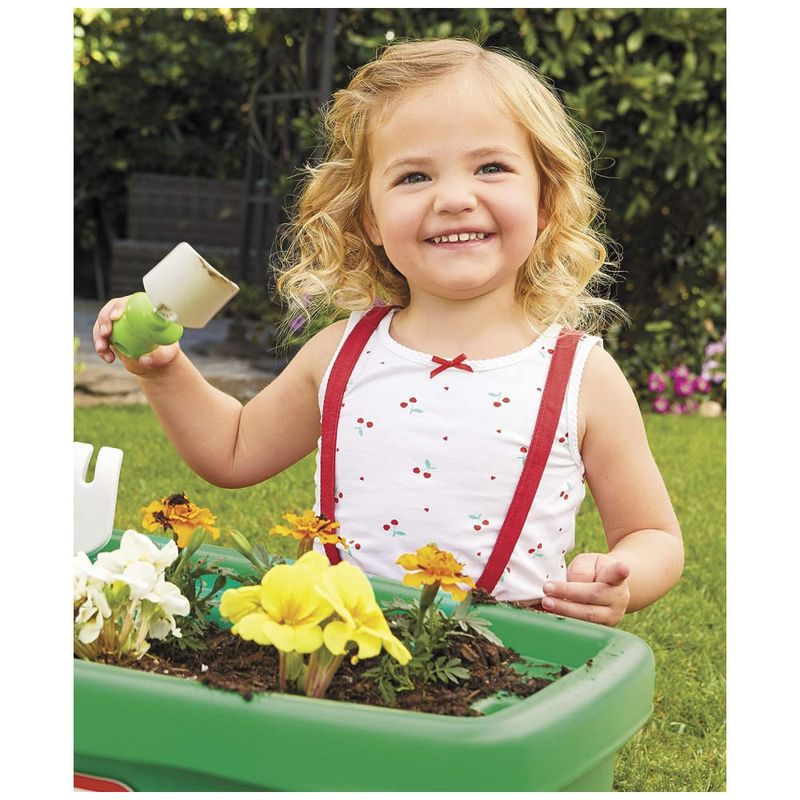Desperte a imaginação de seus filhos e seus polegares verdes com o conjunto de atividades de carrinho de mão de jardim 2 em 1. Este incrível brinquedo de jardinagem permite que as crianças finjam plantar os brinquedos de plantas incluídos e se transforma facilmente em um carrinho de mão real e funcional. As crianças podem até plantar seu próprio jardim sementes não incluídas e regá lo com o aspersor de água de trabalho. A sombra de tecido e a bandeja de plantio também se separam, para que todo o carrinho também possa ser reconfigurado em um plantador. Este conjunto de atividades de dramatização é ótimo em ambientes internos ou externos, para que seus filhos possam imaginar sua jardinagem durante todo o ano.