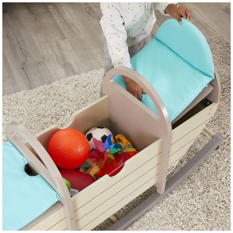 DIVERTIDO E CONFORTÁVEL Com almofadas de assento de tecido e suporte para as costas, os pequenos vão balançar e cambalear para o conteúdo de seus corações.