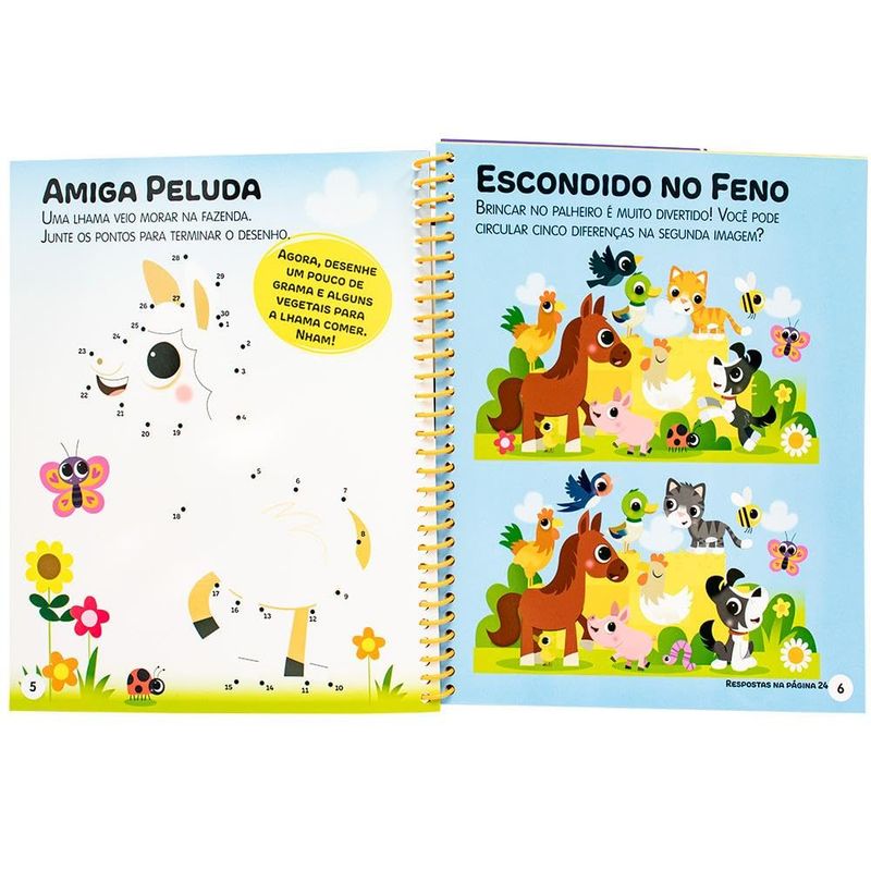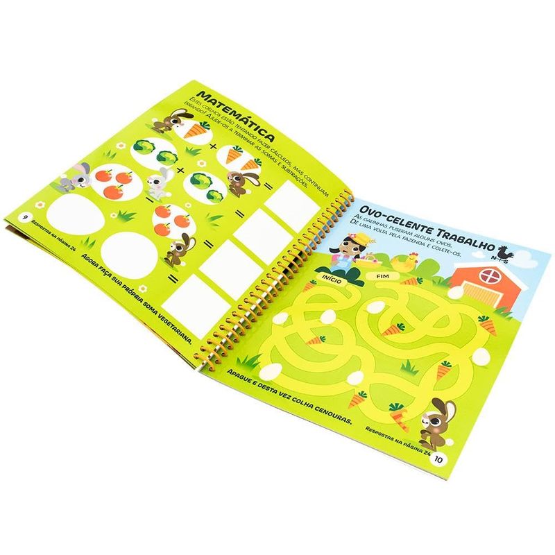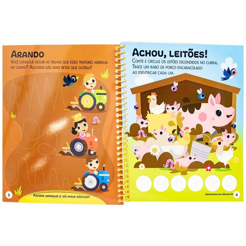 explore a Fazenda Agitada com Este Livro de Atividades Escreva e Apague. Utilize Sua Caneta Para Completar Labirintos Desafiadores, Ligue Os Pontos e Localizar As Diferenças. Depois, Basta Apagar Para Aproveitar Tudo de Novo.